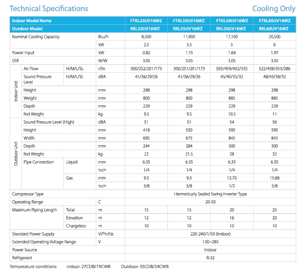 FTKL60UV16WZ - 2.5 HP SPLIT AC
